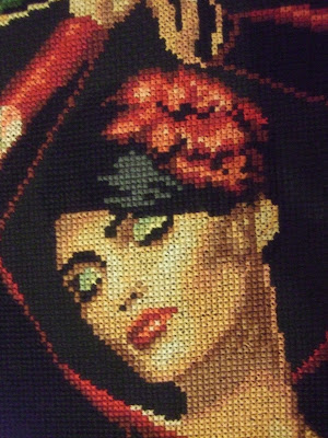 Since I started this project I have moved house four times, moved to France and back, have fallen in love and settled down with the loveliest man I could have found, I've had five different jobs, learnt an entire language, broken my arm twice (a possible excuse for having taken so long to complete this project), people I know have died and been born, I've made new friends and lost old ones, the shop I bought the cross stitch kit from closed... And through all of this, one thing has remained constant... my slow progress with the Spanish Dancer.